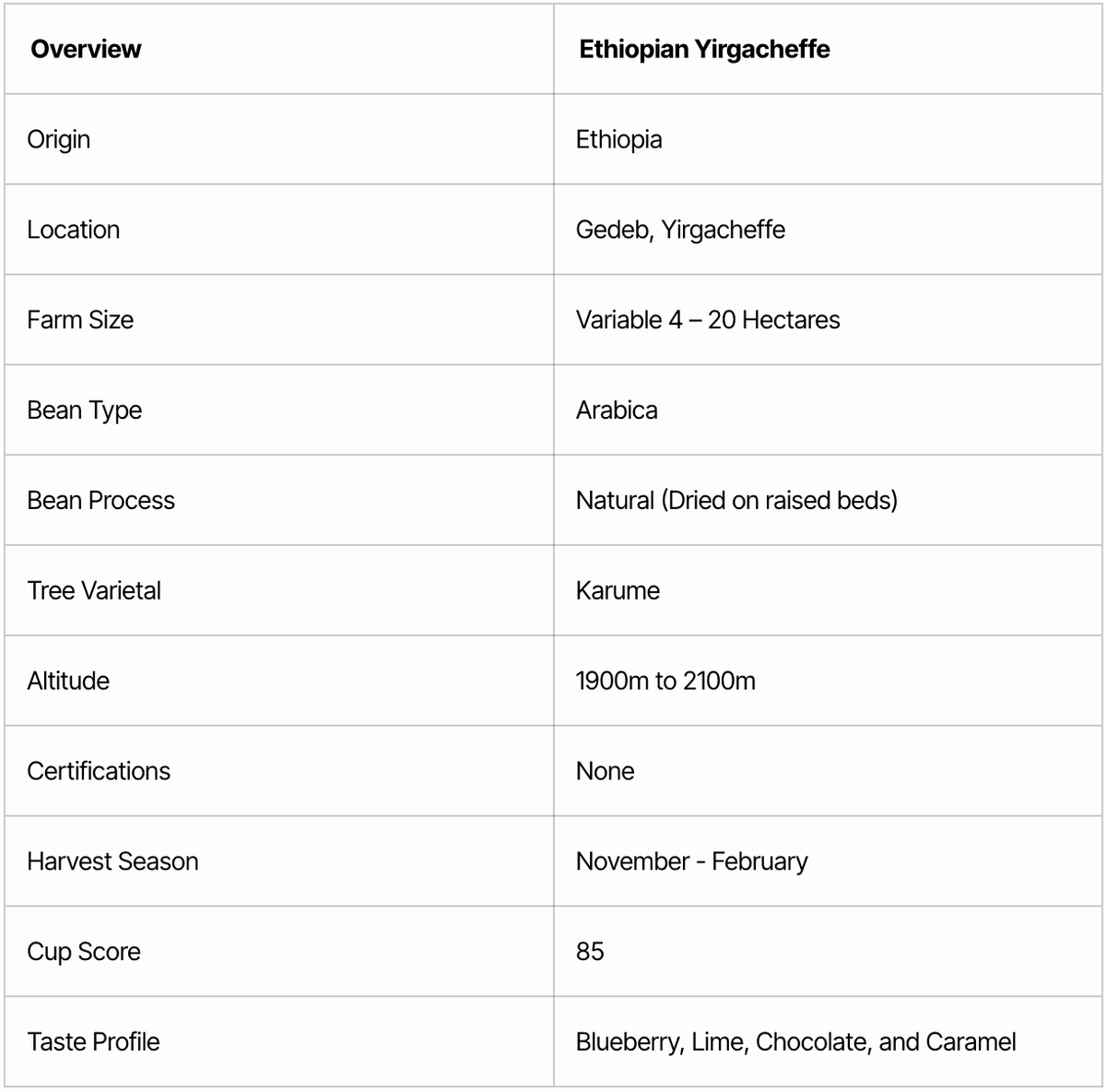 It has been classified as a Q-grade Grade 1 fully washed coffee by the Ethiopian Commodity Exchange Central Liquoring Unit which really highlights it as an extra special lot. The drying period generally lasts for up to 2 weeks until the moisture level of the coffee reaches 12% or lower.